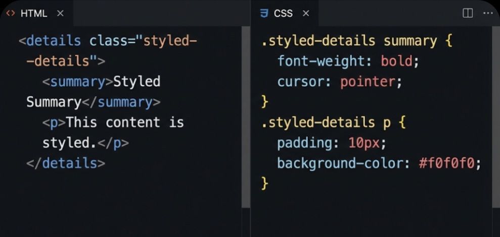 The <details> element can be styled just like any other HTML element. You can change the appearance of the summary, the hidden content, and even the disclosure triangle.