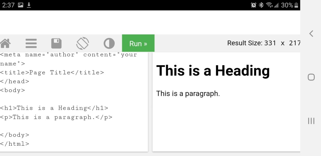 Note: Most Html elements, also called tags have an open < and > closing bracket.