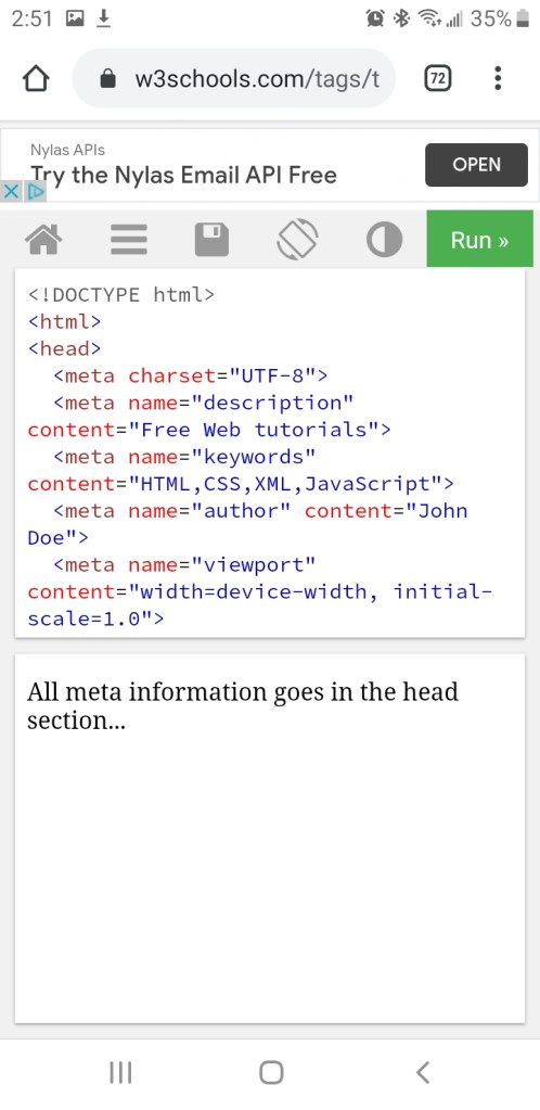 The meta tags within the head will not be seen by your visitors to your website. Meta tags or metadata are what tell a browser how to perceive or view your website. Here are some examples: